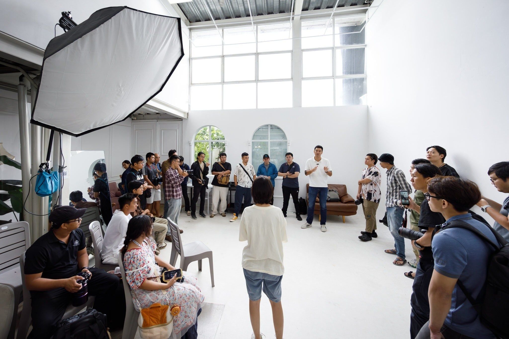 Workshop được chia thành hai phần gồm talkshow và thực hành. Sau phần lý thuyết, các học viên có cơ hội trực tiếp quan sát và áp dụng kiến thức thông qua buổi thực hành, từ đó hiểu rõ hơn cách kiểm soát và biến đổi ánh sáng để tạo nên sự khác biệt giữa một bức ảnh kỹ thuật và một tác phẩm mang tính nghệ thuật.