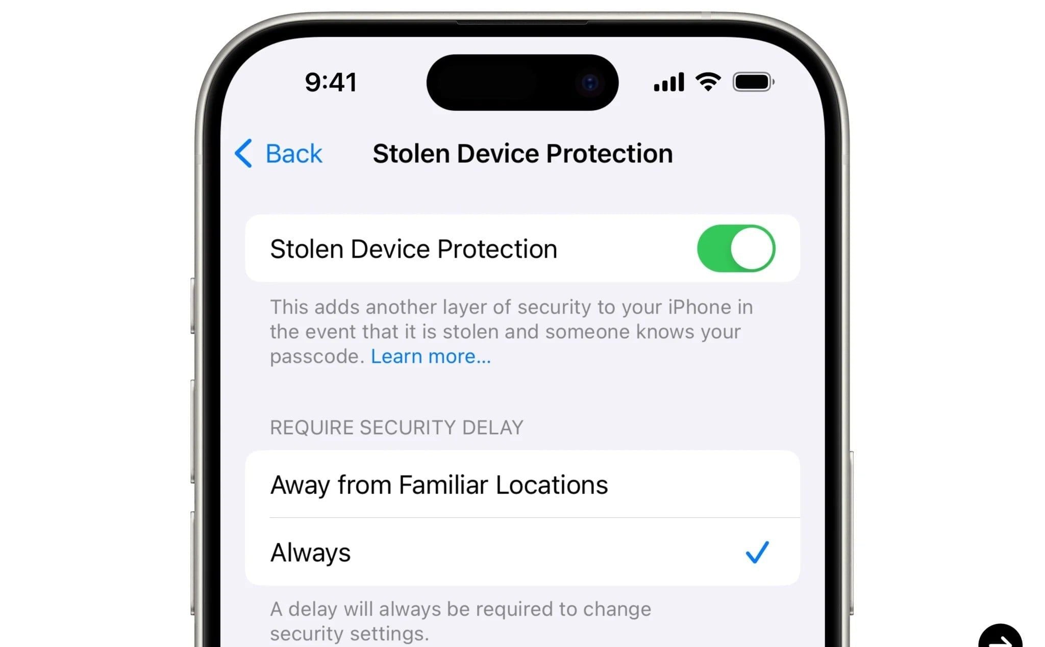 Với những người làm nội dung, chiếc iPhone không chỉ là điện thoại mà là kho lưu trữ dữ liệu khổng lồ gồm hình ảnh, video gốc chưa hậu kỳ và các tài khoản mạng xã hội giá trị. Trong iOS 17.3, tính năng này đã xuất hiện, nhưng ở iOS 17.4, Apple đã nâng cấp nó lên một tầm cao mới. Giờ đây, bạn có thể chọn "Luôn luôn" yêu cầu trì hoãn bảo mật khi thay đổi các cài đặt quan trọng (như mật khẩu Apple ID), thay vì chỉ khi ở xa các địa điểm quen thuộc.
