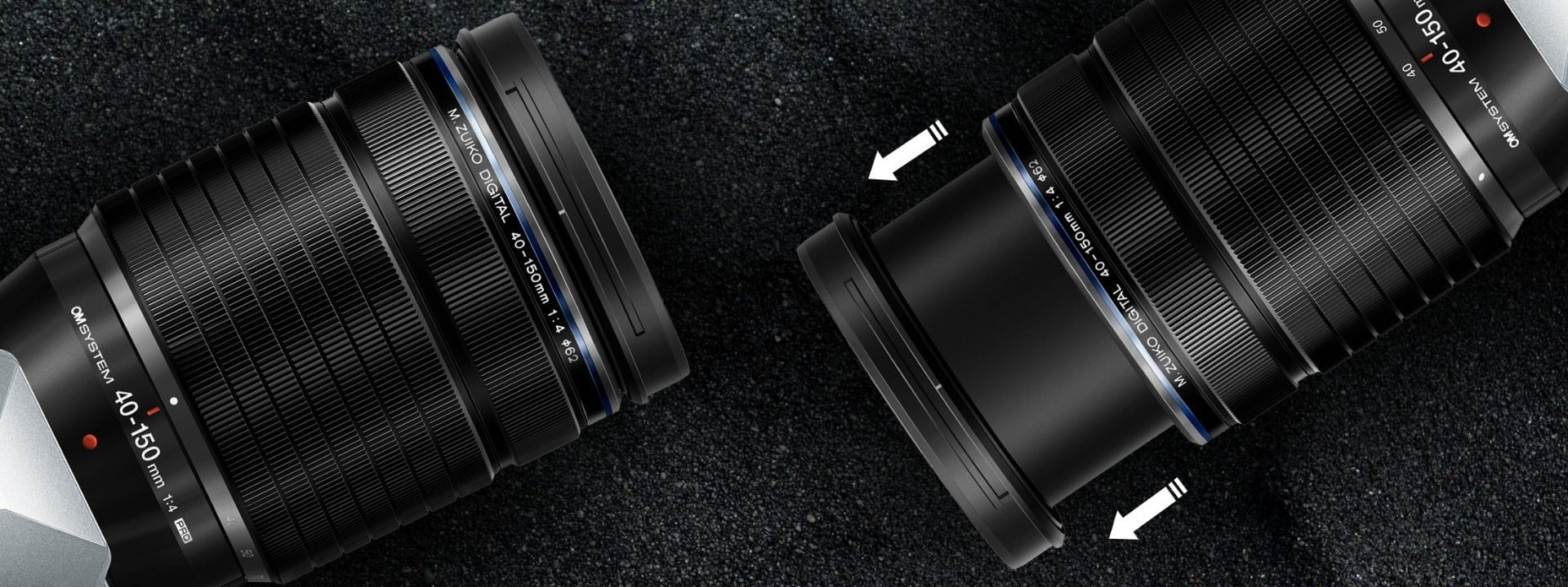 M.Zuiko 40-150mm tích hợp công nghệ thu gọn tiên tiến, mang lại khả năng giữ nguyên chiều dài ống kính ở mọi mức zoom.