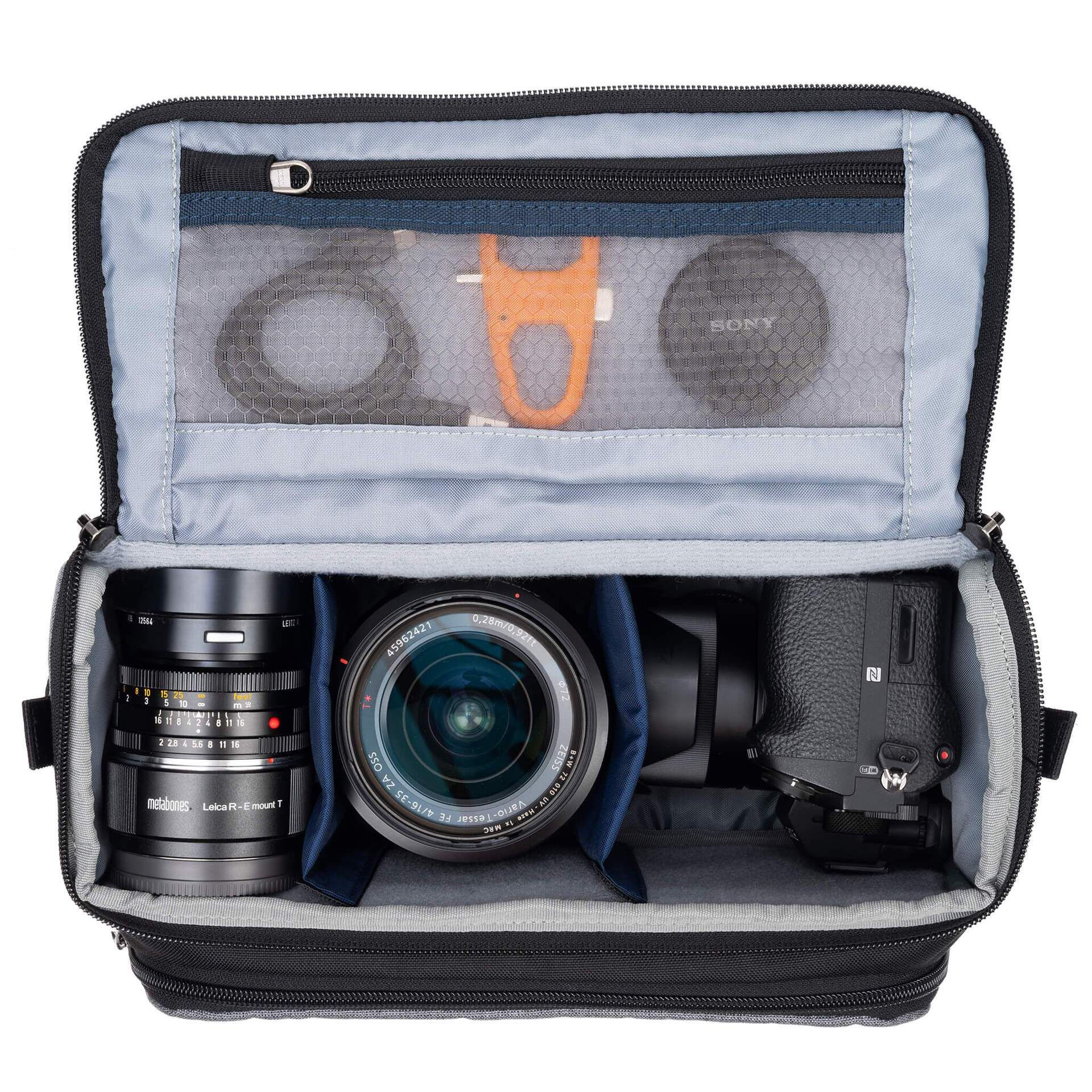 Mirrorless Mover 25 phù hợp để mang theo một máy ảnh mirrorless tiêu chuẩn cùng 2–3 ống kính, đặc biệt là các lens zoom khẩu f/4 hoặc prime tiêu cự ngắn đến trung bình. Không gian được tối ưu để vừa đảm bảo chứa đủ thiết bị, vừa giữ sự gọn gàng khi di chuyển.