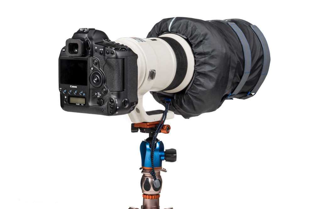 Bao che có thể phủ dễ dàng lên máy ảnh DSLR hoặc mirrorless full-frame gắn ống kính 300-600mm f/2.8 hoặc các ống kính có kích thước tương đương.. Nó có một dây đeo chống trượt, có thể điều chỉnh, móc vào loa che nắng để nó luôn ở đúng vị trí. Nó có thể được sử dụng trong khi chụp trên giá ba chân hoặc chân máy đơn và có một cửa sổ quá khổ để xem màn hình LCD và điều khiển của bạn.