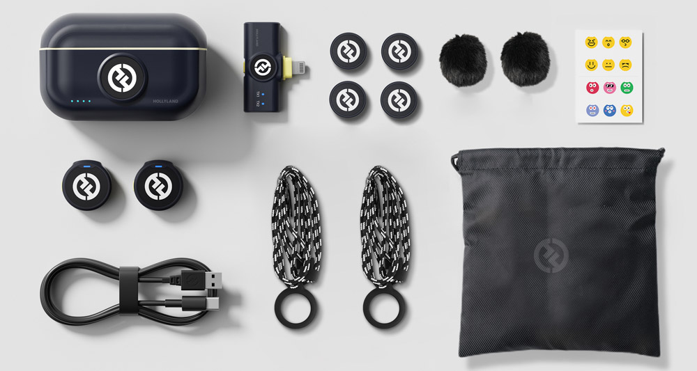 Hệ thống bao gồm hai máy phát có tích hợp micro đa hướng và lưới giao diện kép, một đầu thu Lightning cắm vào và một hộp sạc. Kẹp từ tính ở mặt sau và hộp đựng vòng cổ bằng silicon giúp bạn gắn máy phát vào thiết bị của mình một cách dễ dàng.