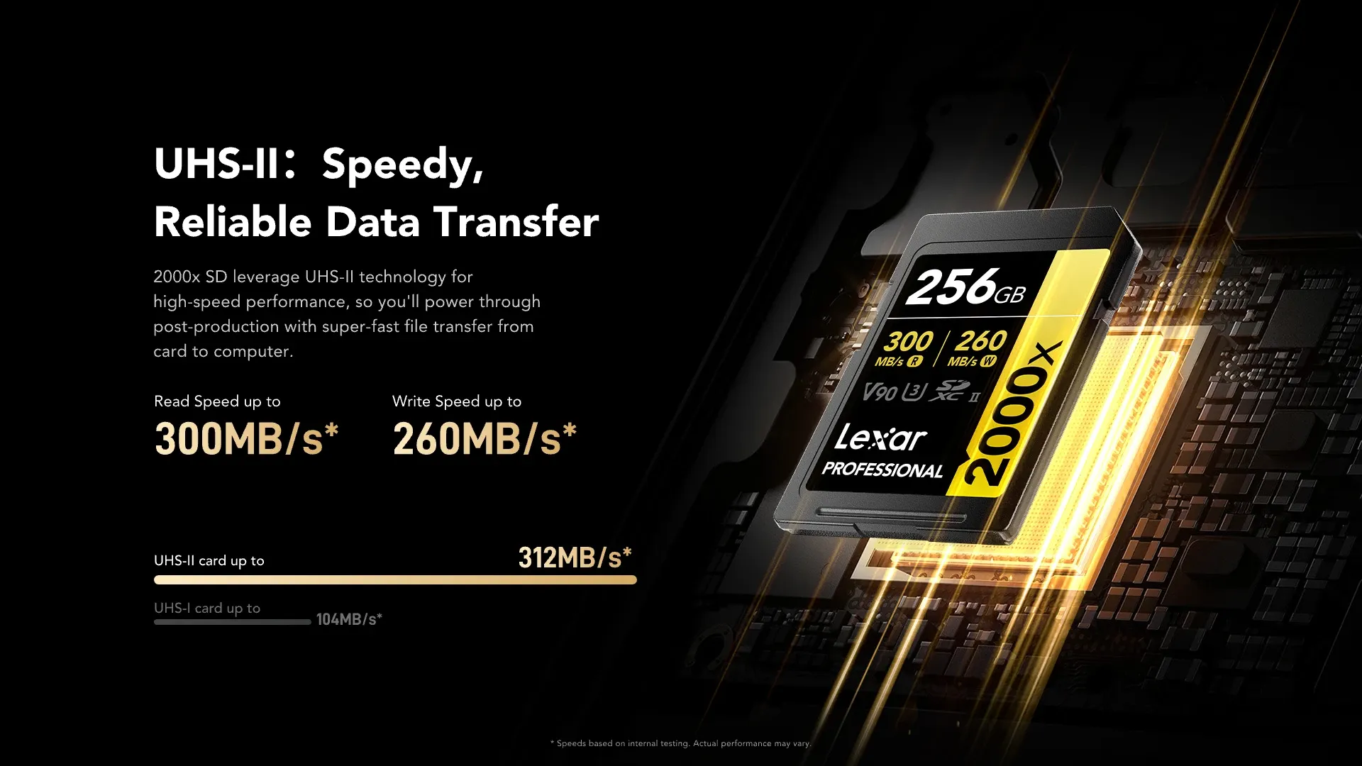 Khi sử dụng với thiết bị không hỗ trợ UHS-II, thẻ sẽ hoạt động ở tốc độ thấp hơn theo chuẩn của thiết bị.