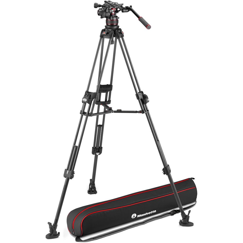 Chân máy quay video Manfrotto carbon chân đôi có thanh trải ở giữa