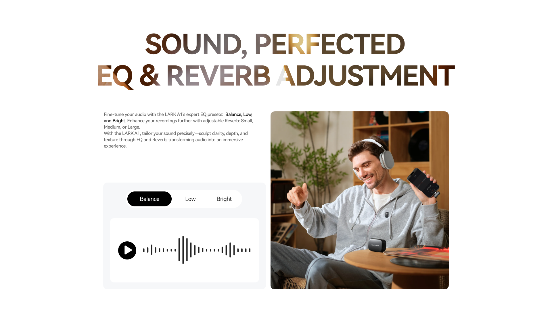 LARK A1 là công cụ âm thanh chuyên nghiệp tối ưu cho các nhà sáng tạo nội dung, nhà quay phim di động, Vlogger, Tiktoker… Với chất lượng âm thanh đỉnh cao, khử nhiễu thông minh và thời lượng pin ấn tượng, LARK A1 là lựa chọn hàng đầu để đảm bảo bạn luôn ghi lại được âm thanh sắc nét, trung thực – ở bất kỳ đâu.