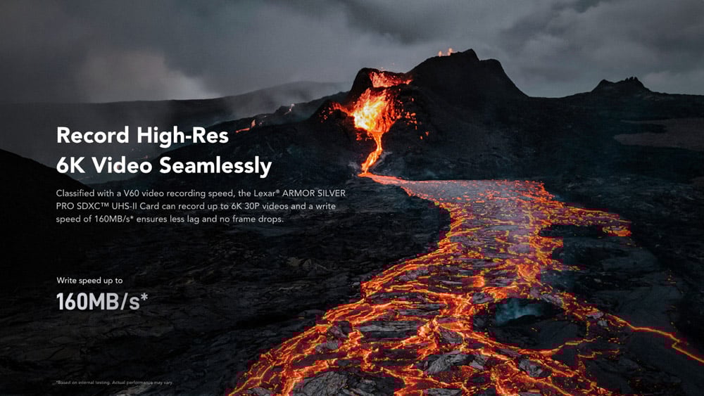 Ghi hình 6K mượt mà: Chuẩn tốc độ video V60, tốc độ ghi lên đến 160MB/s, không rớt khung hình.