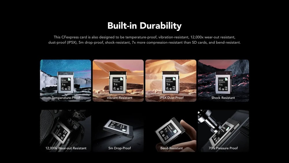 Toàn bộ sản phẩm được thử nghiệm nghiêm ngặt trong phòng lab Lexar với hàng nghìn thiết bị nhiếp ảnh khác nhau để đảm bảo độ tương thích và ổn định tối đa.