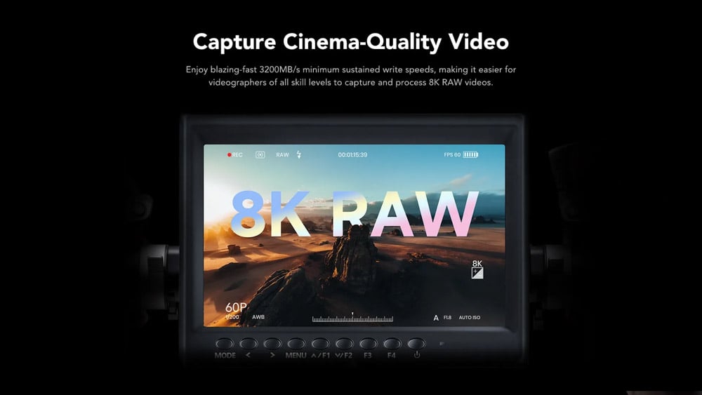 Tốc độ ghi nhanh, khả năng kiểm soát nhiệt độ tốt, đạt chuẩn VPG-400 – đảm bảo hiệu suất quay 8K RAW liền mạch, không drop frame.