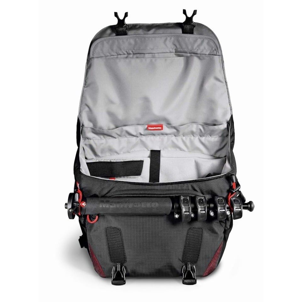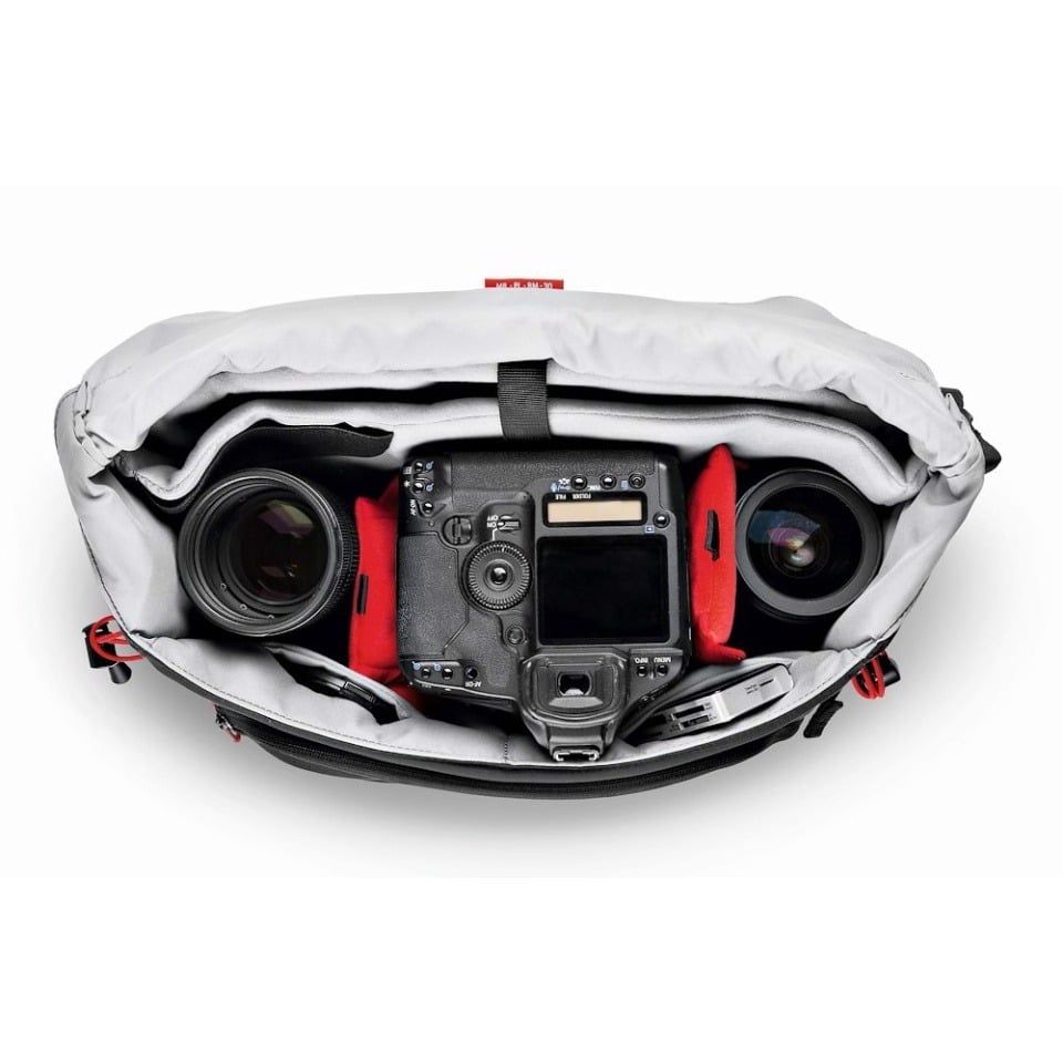 Thiết kế mở với nắp chống ồn và dễ thao tác bằng cảm ứng cho phép truy cập nhanh vào thiết bị. Ngăn bên trong có vách ngăn đệm di động, dễ dàng sắp xếp các thiết bị theo nhu cầu, trong khi nhiều ngăn phụ kiện bên ngoài giúp lưu trữ nhanh chóng các vật dụng nhỏ. Bên dưới nắp còn có dây thun cố định mini tripod hoặc các phụ kiện khác.
