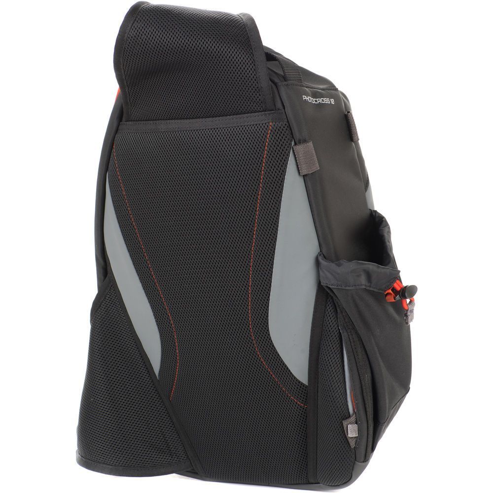 Dây đai nén kép được cung cấp và có thể được kẹp vào các vòng đai đồ dùng để chúng băng qua tấm chắn phía trước, cho phép các vật dụng lớn hơn như chân máy, chân máy đơn, gậy đi bộ đường dài hoặc quần áo gấp được buộc chặt vào PhotoCross 10. Túi bên co giãn cũng có thể được sử dụng để đựng chân máy, chân máy đơn hoặc gậy đi bộ đường dài; bất kỳ thứ nào trong số đó đều có thể được cố định dưới một trong các dây đai nén đi kèm được gắn vào các vòng đai đồ dùng được đặt phía trên túi bên.