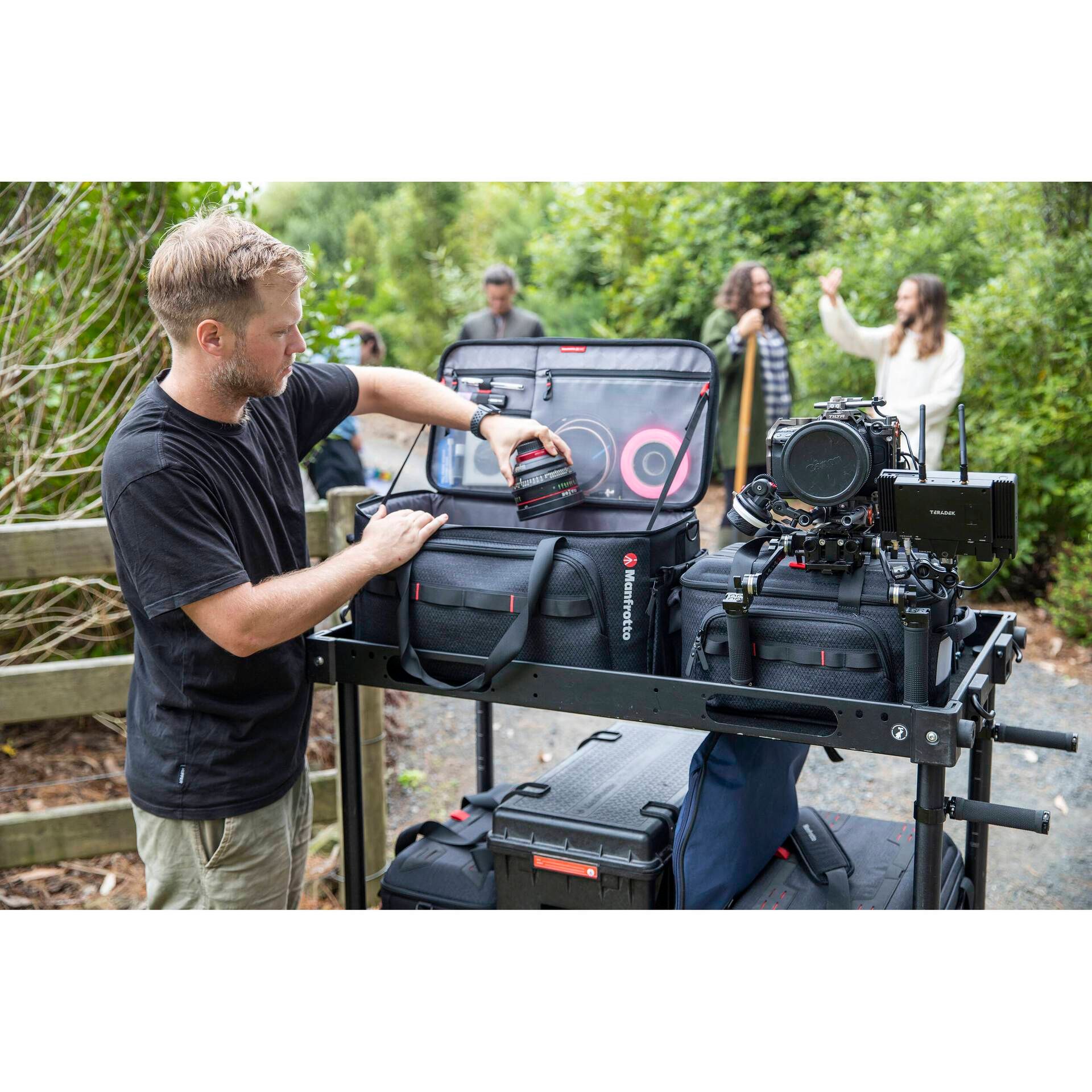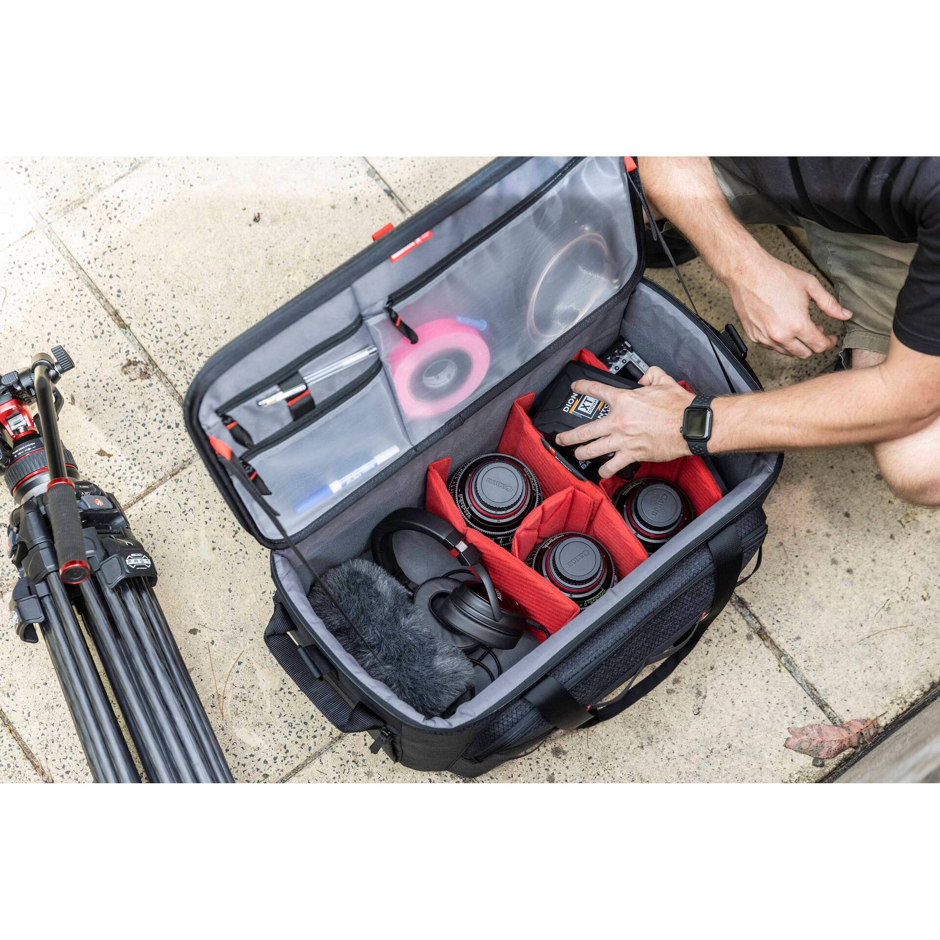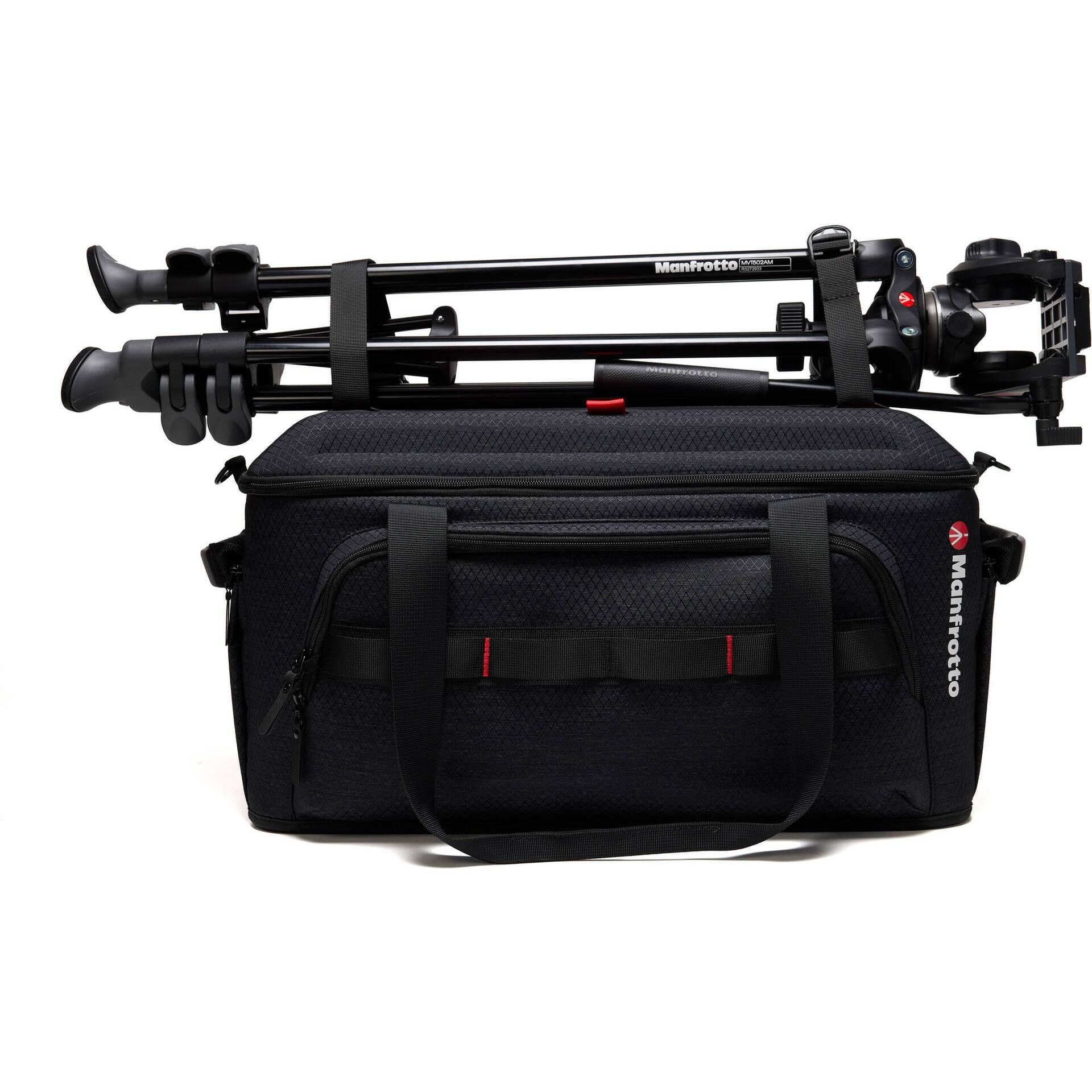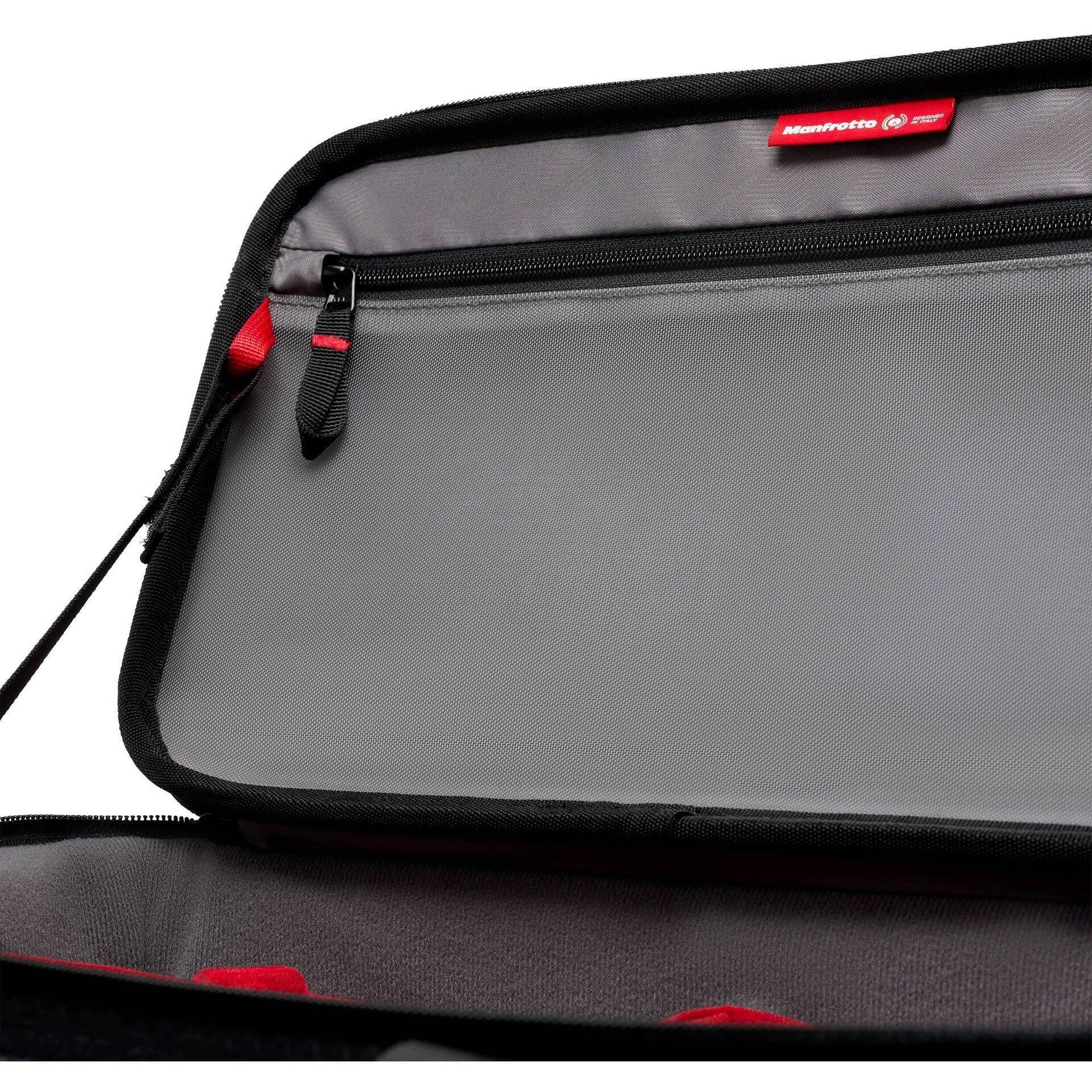 Công nghệ làm nắp túi mới cho phép mang theo chân máy hoặc thanh trượt trên miệng túi mà không cần phải mang trong túi bổ sung. Nhờ thiết kế bên trong và bên ngoài, chiếc túi hoạt động hoàn hảo không chỉ với máy quay mà còn với toàn bộ phạm vi hỗ trợ trong hệ sinh thái các sản phẩm Manfrotto.
